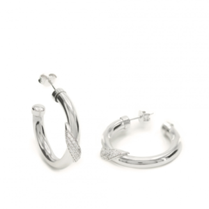 PENDIENTES ARO PLATA CON LÍNEA DIAGONAL DE CIRCONITAS