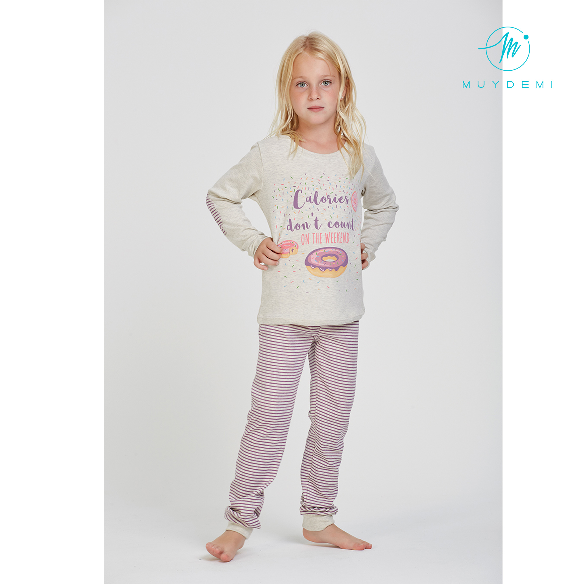 29,90€Pijama mujer Marca: Muydemi Color: Gris claro y pantalón lila de rayas Camiseta: Bolsillos laterales Pantalón: Con puño 100& algodón